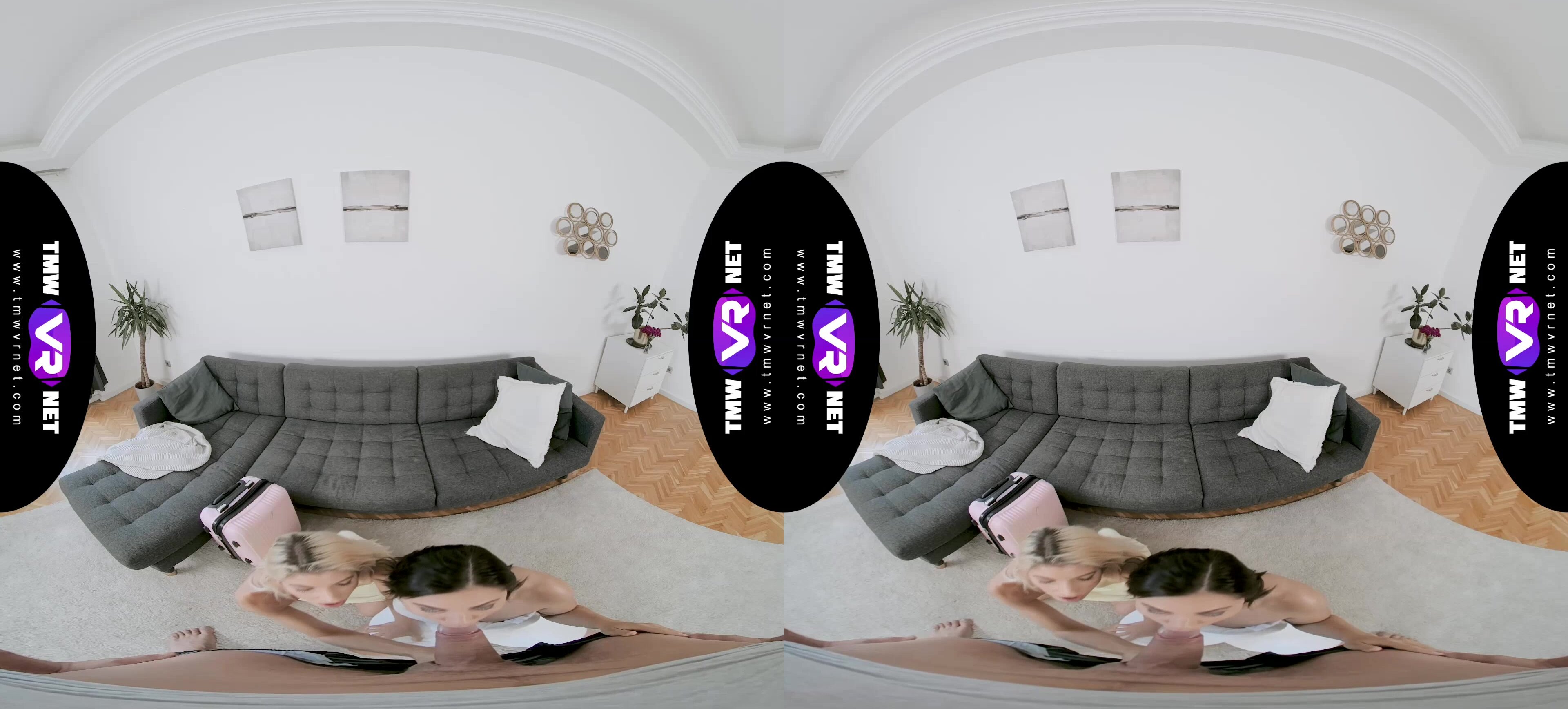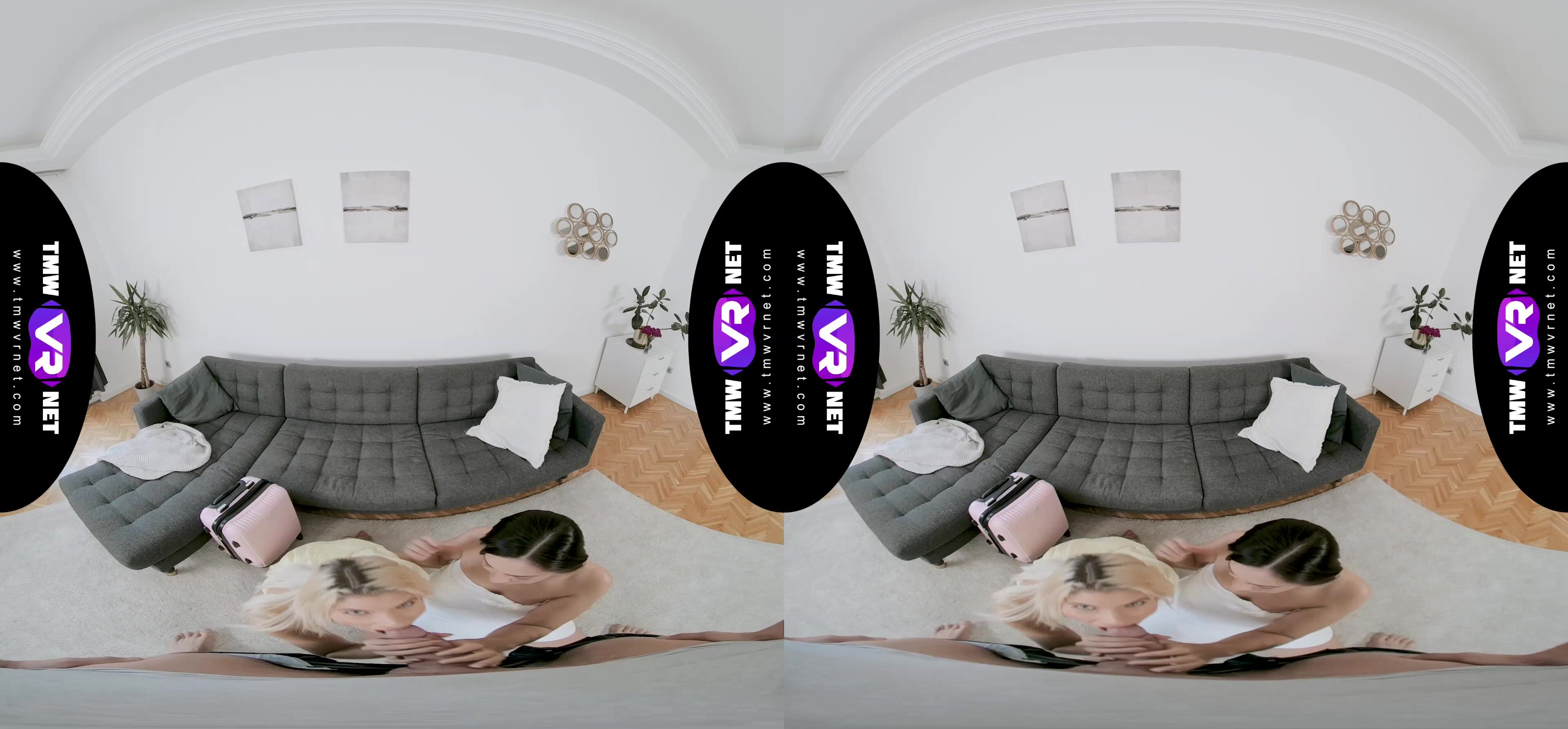 It's a quiet morning and Shrima Malati takes her morning shower when she hears a knock on the door. She wraps herself with a fluffy towel and opens the door to Missy Luv, her best girlfriend who came to visit her. She introduces Missy Luv to her boyfriend and tells him she needs to return to the bathroom and that it would be nice if they chat for a while. Once she leaves the room, Shrima Malati's boyfriend takes his dick out of his pants and Missy Luv gives him a blowjob. This is when Shrima Malati enters the room and catches them red-handed.