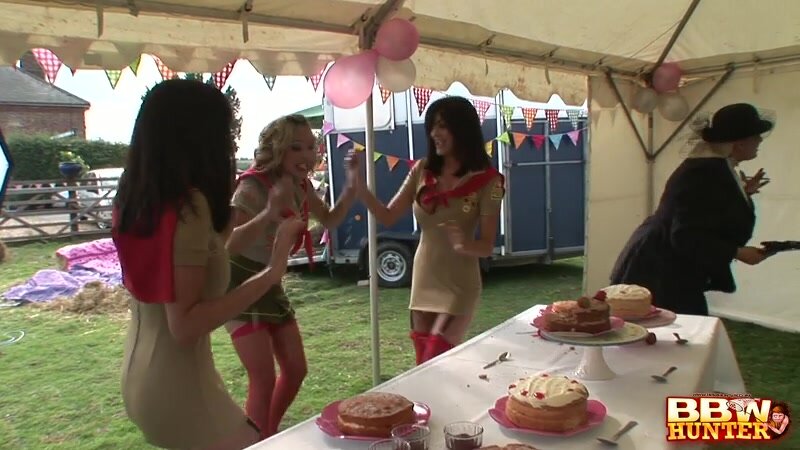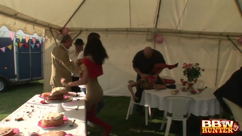 Plumper having an orgy in public