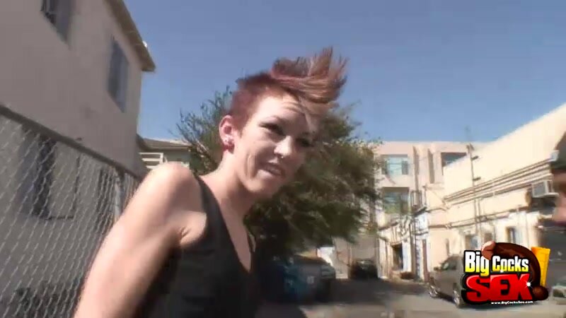 Perish is a punk-rock chick with small tits and piercings who gets her first taste of interracial action in this update. Shorty Mac found this chick in some alley near the studio and invites her over for her first interracial big cock scene.