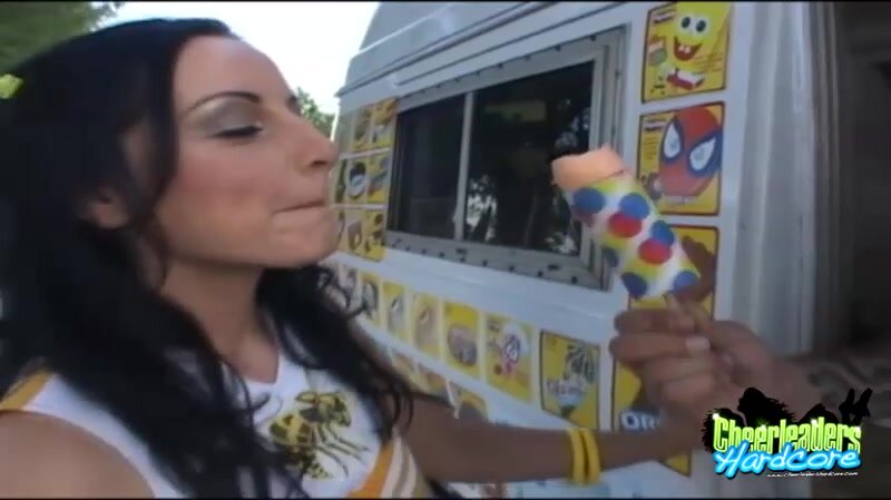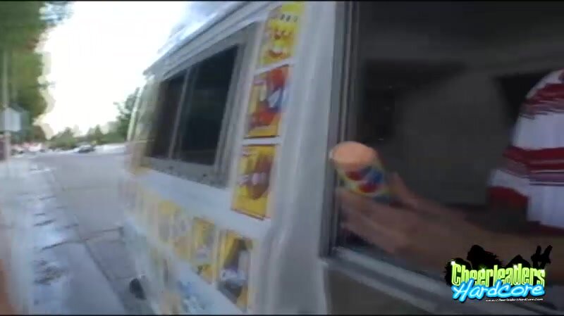 Yup, that's right! Melissa Matthews is a pretty cheerleader who looks too damn cute to be doing porn but certainly has what it takes to be a pornstar. You'll get to watch her hook up with the ice cream truck guy and fuck him at the back of the truck.