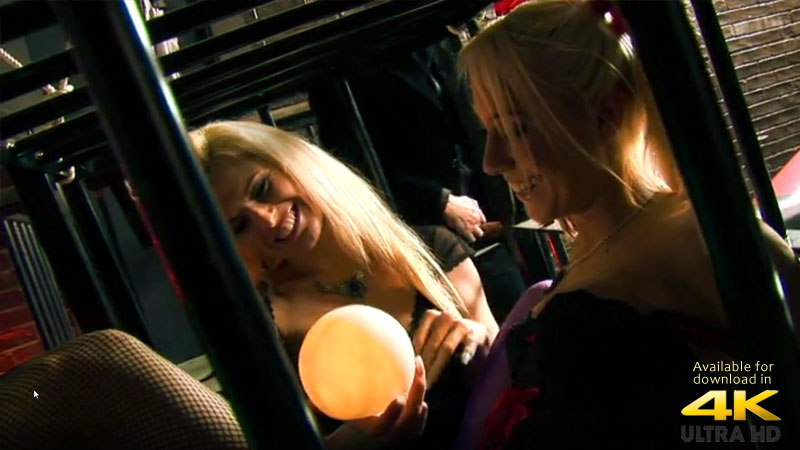 Nothing like watching these hot submissives go at it. Victoria and Carla Cox are sexy submissive blondes making out and admiring each other's sexy bods inside her cage.