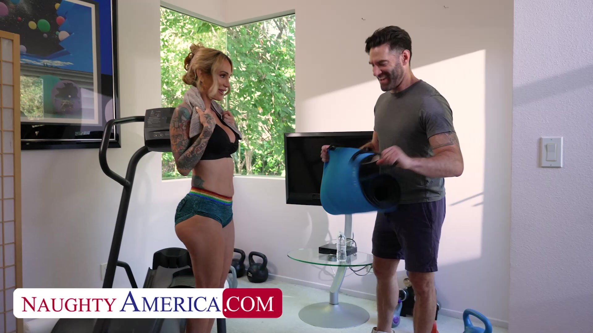 Sarah Jessie has her husband's trainer over for a one on one session. Shes super impressed with her husbands gains and wants to see if she can accomplish the same results. After seeing the trainer's physique she takes her workout to another level. Watch how Sarah maxes out on squats with her wet pussy lips wrapped around the trainers hard cock.