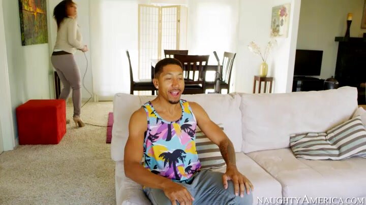 Ethan stop by to visit his friend, but his friend is still busy at work. His friend's mom, Sara Jay, asks Ethan to stay a while. Sara knows that Ethan's 21st birthday was only a few days ago and she wanted to give him a present, so she leads him into the bedroom, dresses up in some sexy lingerie, and has Ethan bang her brains out.