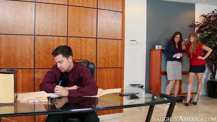 Syren De Mer has the hots for the new intern that Darla Crane hired. Apparently he did whatever it took to get the position. Since Syren finds him attractive Darla decides to show her exactly what the intern did to earn his job. These lovely ladies have him ravage their bodies. It's all in a day's work for their new intern.
