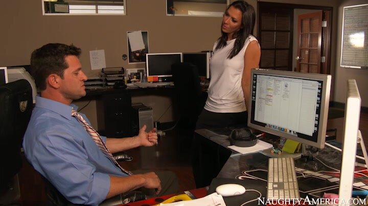 Rachel Starr finds out that one of her best employees is leaving the company. She really doesn't want to lose him so she's ready to show him how much she appreciates his hard work by sucking and fucking his hard cock.