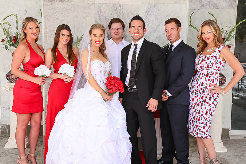 Johnny is getting married in a couple of hours, but he's too hung over to wake up. Luckily the maid of honor, Brooklyn Chase, comes to the rescue. She knows how important it is to get him to the wedding on time so she tries an old hangover remedy of hers to get him up. She whips out his dick and goes to town on it. That definitely gets him up!