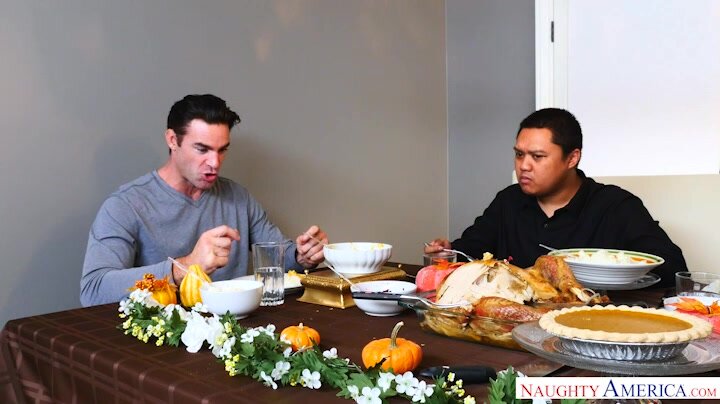 Phoenix and Charles have a friend and his date over for Thanksgiving dinner. Both Phoenix and Charles got the hots for their friends date and want to feast on her pussy.