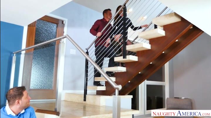 Busty hotwife Ariella Ferrera fucks husband's co-worker to celebrate big sale at work