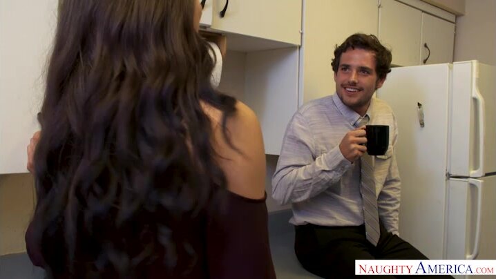 Karissa Kane is so tired of her co-worker Tyler' feeble attempts to pick up on her. His cheesy-ass one liners make her laugh, but she' ready to see if he can put his money where his dick is, so she seduces grabs his cock right in the break room to see if he' in for an adventurous fuck! Wide eyed and dumbfounded, Tyler can hardly move a muscle when his busty, hot co-worker drops to her knees and puts his dick in her mouth. Soon enough the colleagues are going at it full throttle where people eat lunch, except Tyler' eating pussy and Karissa' dining on dick! Watch him pull her hair while he pounds her doggystyle until he feeds her what she really wants 'his hot cum!