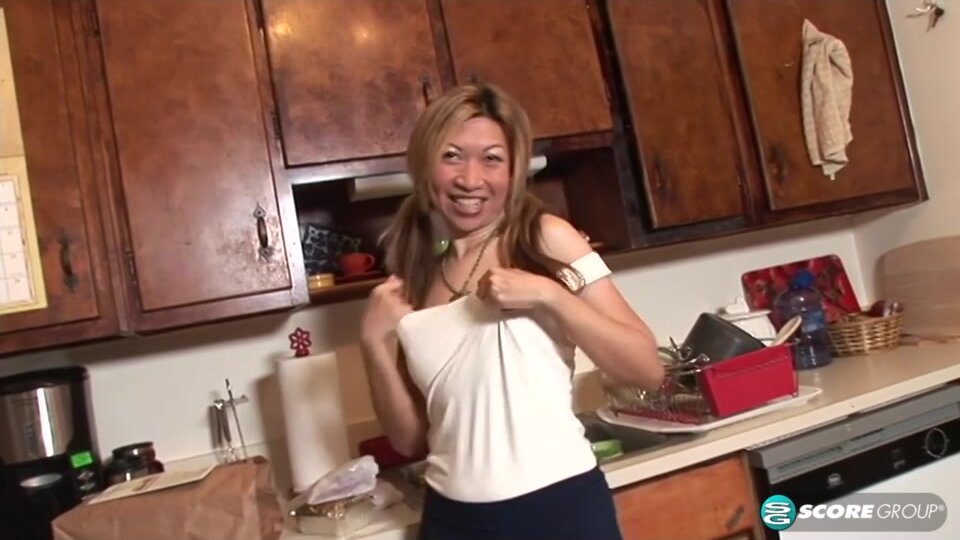 Uber Eats ... pussy? Okay! Here, a guy delivers food to Veronika, who's from Taiwan. She invites him in and gives him a show, which involves getting naked in her kitchen and fucking her pussy with a toy. After this, there's no need to tip him. Veronika is a happily married woman whose husband really likes showing her off. ""He's always daring me to flash my boobs in public,"" she said. ""He's uncontrollably horny for me. My friends are all jealous because their husbands lost their libidos after they got married. Not my guy. He jumps at the opportunity to fuck, even when we're just chilling in the park or wherever. ""The naughtiest place we've banged was in the dressing room at Target. I was trying on some clothes, and I asked him to come in with me to get his opinion on a new top. As soon as he saw me, his eyes got really wide and I saw that he was getting hard. Talk about a glowing review! I dropped to my knees and blew him for a minute, but I could tell he was gonna bust really quickly, so I turned around, dropped my pants and let him shoot his load in my pussy.""