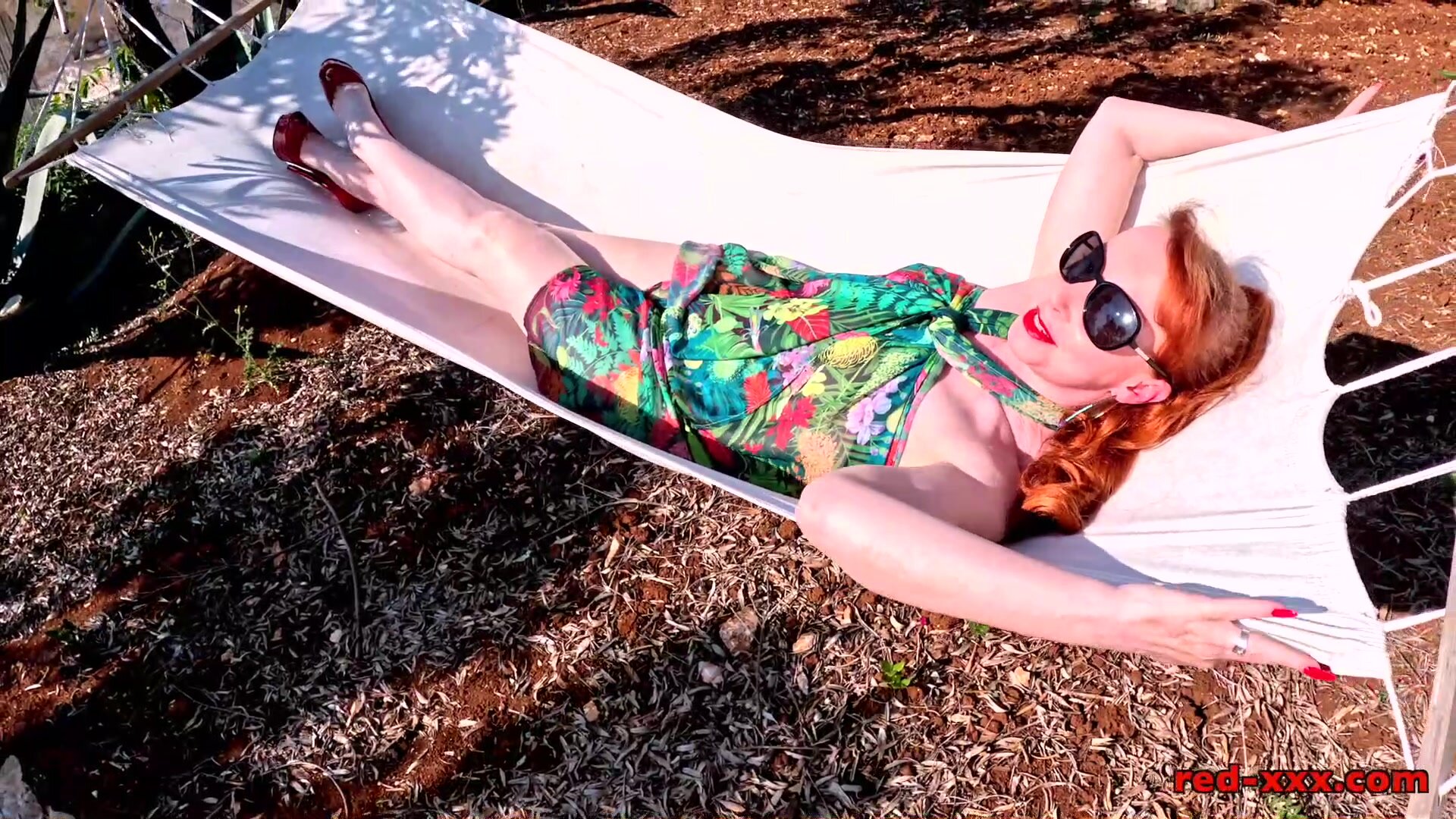 Join Me for an impromptu wank session in My hammock! The perfect vacation vibe, barelegged, draped in a sarong and finished off with red hot killer keels as only Moi can - no wonder Im in the mood for mischief! I do love an easy access outfit in the great outdoors, and the feel of the late afternoon sun on My skin soon had My hands tweaking those big Milf tits and delving between those moist shape