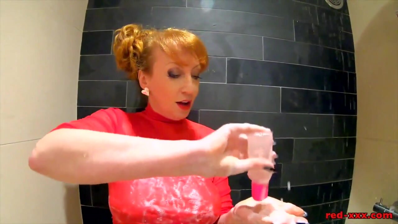 Time to get red hot and steamy in the shower - and naturally Im appropriately dressed in sheer clingy top and panties which leave very little to the imagination!Soon I was oiling and lathering Myself up, loving the feel of the sheer wet fabric against My skin. Naturally My hands began to wander down those panties for a squelchy finger fuck before introducing a favourite in the shower - My trusty r