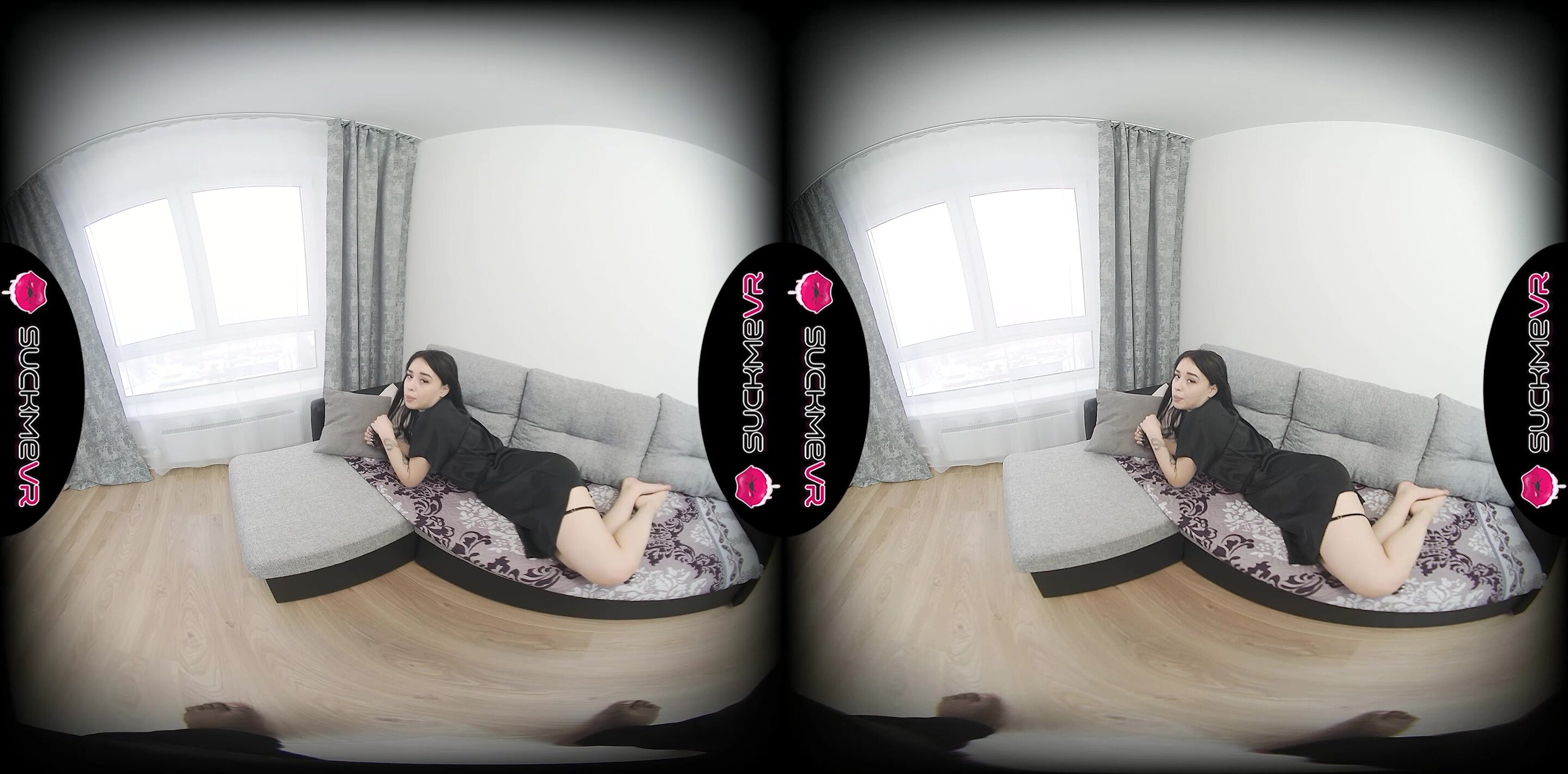 Karolina Geiman is wearing some kind of cover all at first but we can peek and see that sexy lingerie she is wearing. She is not shy at all and she pulls it open and turns over to show off the thong panties she has on.