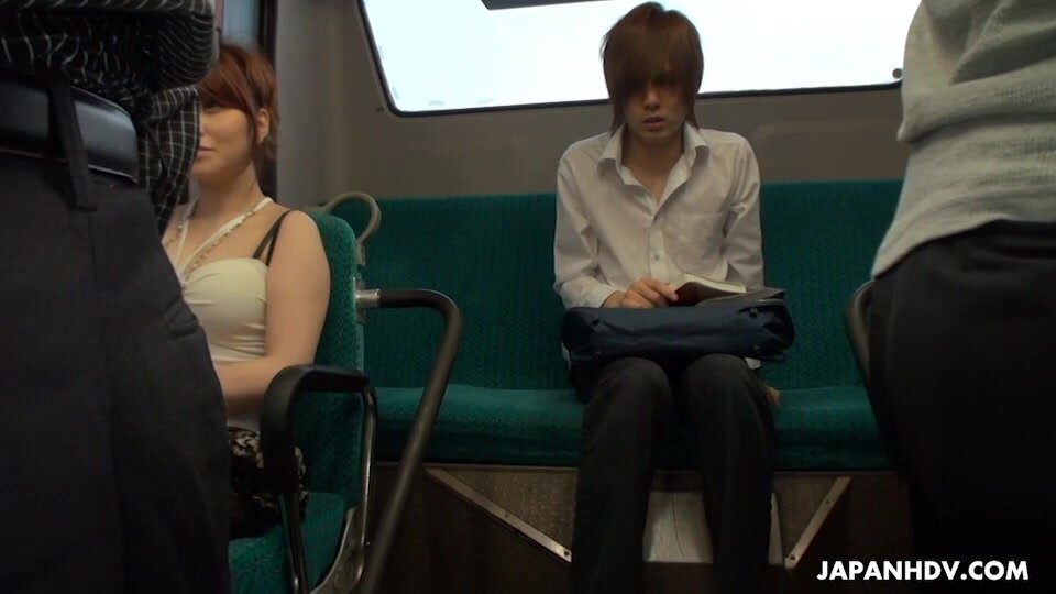 Mari Motoyama sits next to her first victim and gets his attention and starts to kiss him. She of course looks so sexy in her short skirt and her spaghetti string top. Who could resist such a hot babe like her with her cute sweet innocent face.