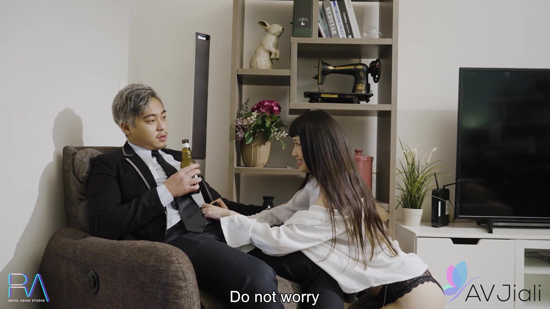 This is a nice way to be met and just the sight of Han Yan in her shirt and panties would relax anyone. She gets right to it and unbuttons his pants and pulls out his cock so she can go to work on relieving some of that built up stress