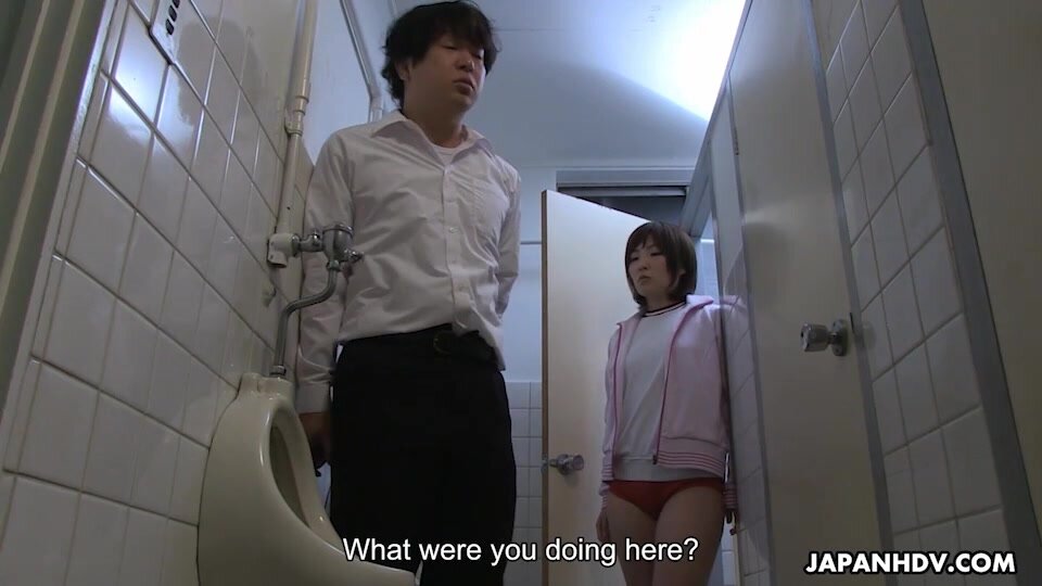 School girl Kaede Oshiro rides virgin guy at the toilet