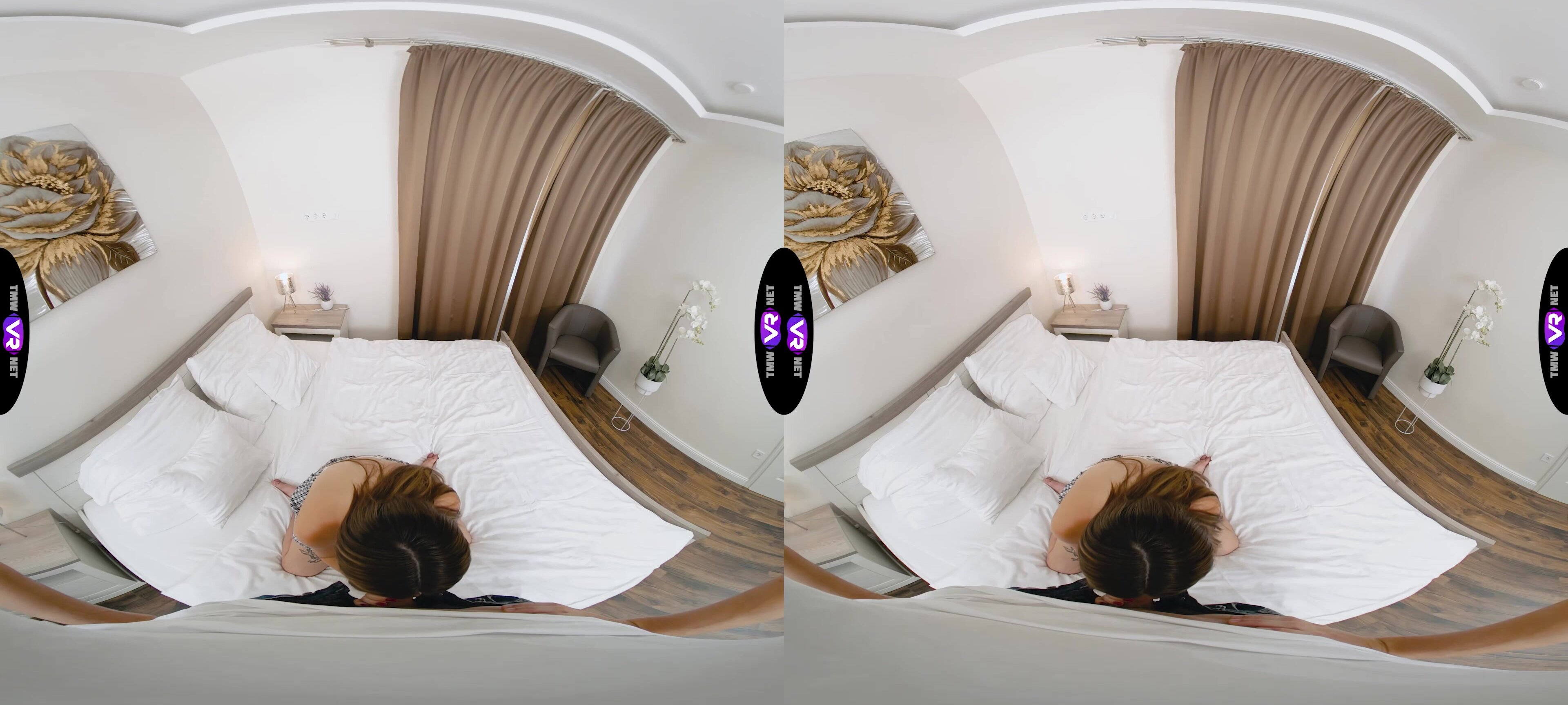 Valkiria's stepbro rushes into her room to ask her a question, but she is talking on the phone and doesn't notice him. She tells somebody on the phone that she is excited and ready to have sex and asks if that somebody wants to see a photo of her naked body. She even turns on a video to perform a sex show for the dude. This is when she notices her stepbrother and waves at him to make him leave. Valkiria tells the dude on the phone that her stepbro is about to go, and they will continue the show. The stepbro takes the dick out of his pants and teases Valkiria with the size of it. Though Valkiria wants to continue the video call, she prefers a real dick to a virtual one.