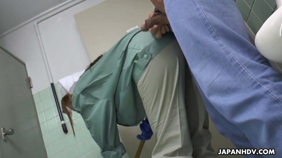 Maki Koizumi works as cleaning staff and fucks a man in a public toilet