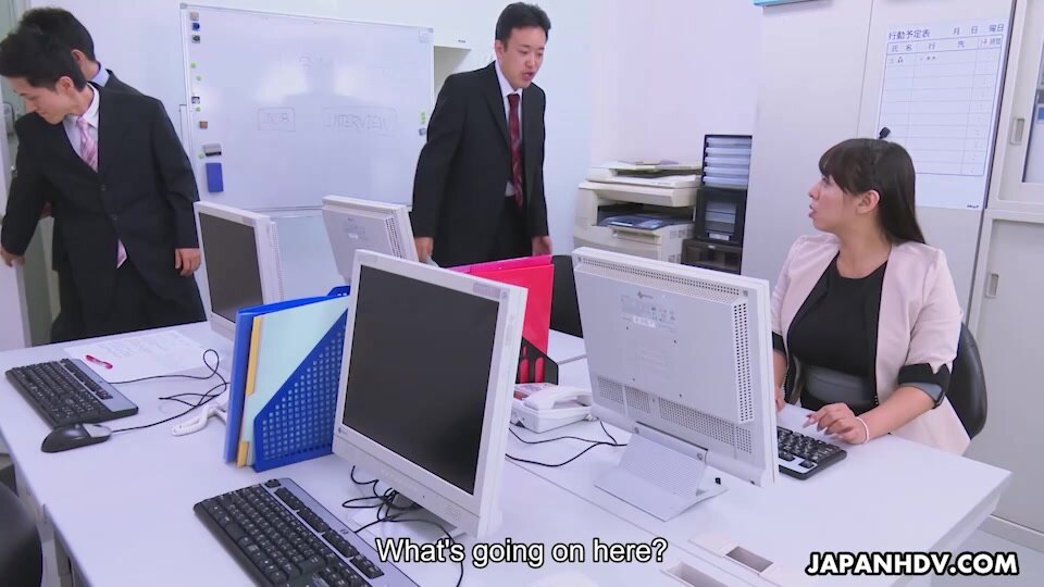 Busty Ryouko Murakami, is in for a truly magnificent time with two of the guys from work. She's in for a treat once the men start undressing her. They share the experience in an empty office, with the woman fully submissive to their desires.