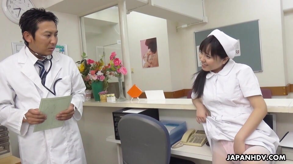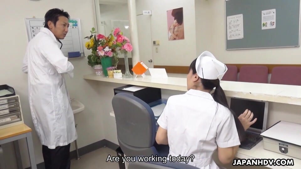 Stunning Japanese nurse Miyuki Ojima feels like getting intimate with this hot patient. She's sure that a cure with pussy action would make the man feel better, so she starts to undress and rub her tits in front of the man.