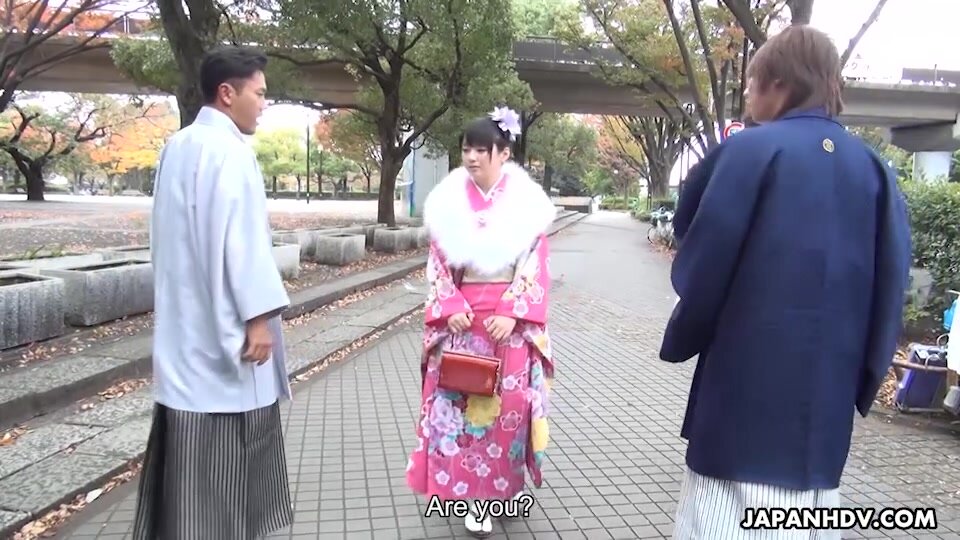 Tsuna Kimura is a very beautiful geisha. She has her pussy rubbed and she sucks and licks the cock. Her hairy cunt is rubbed with the dick before getting it inside. She is fucked so hard and the other two men come and join the action.
