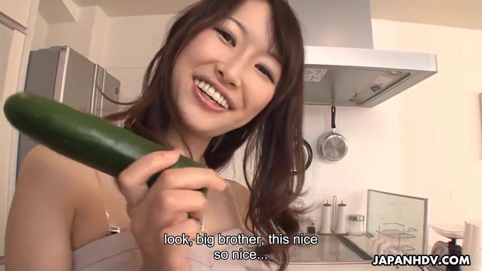 Noriko Aota shows her brother in law what she can do with a zucchini when she is horny.
