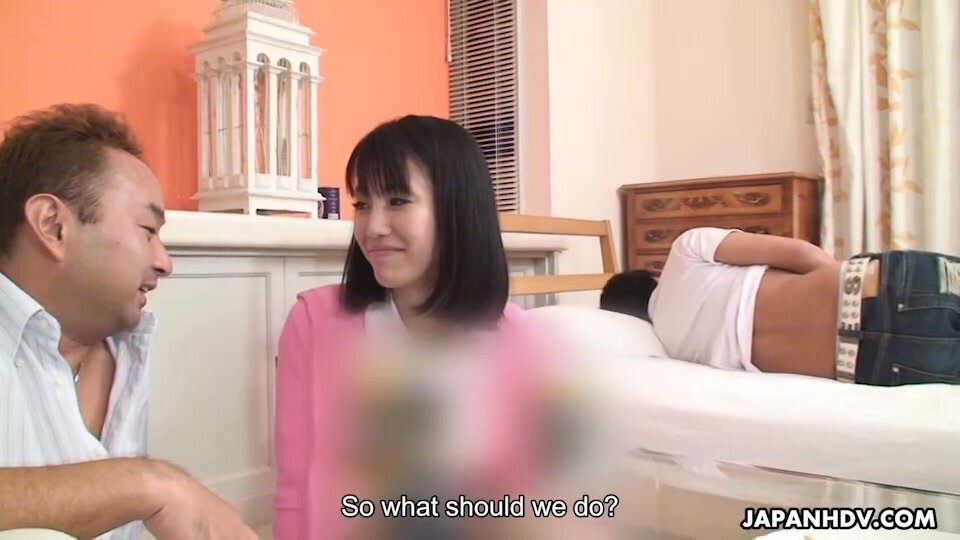 One way or another, Kaede Kyomoto gets her daily dose of fuck. She starts to fuck with a friend's boyfriend but she moans a lot and wakes up her boyfriend. The slut gets banded by the two men, as she loves.