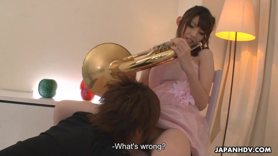After her horn concert, Kanako Iioka is visited by a fan. She is excited, so she starts to tease him to fuck him. Her cunt is touched with the horn, and, as a bonus, this doll puts a vibrator on her clitoris. She takes pleasure while playing the horn