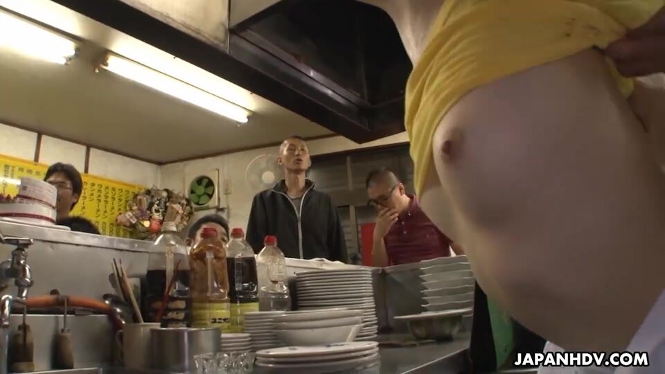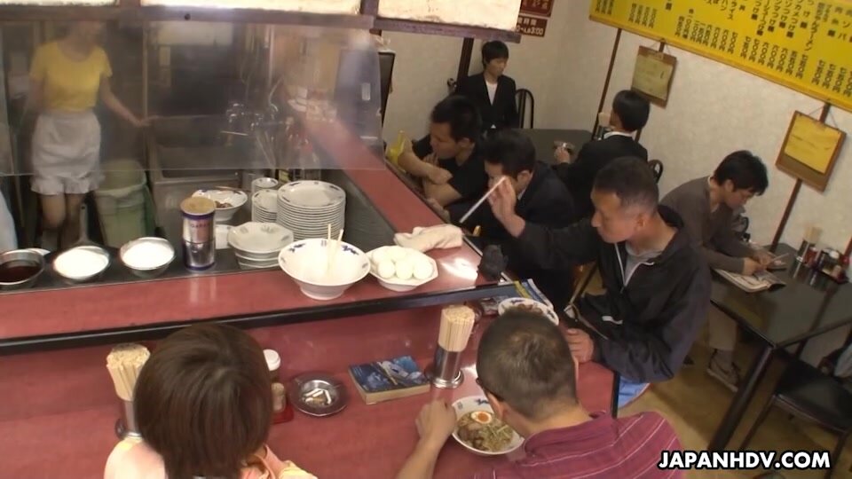Mimi Asuka sucks her boss cock in a restaurant in front of clients. She is fucked doggy style and in mouth same time. After she cums, Mimi is fucked on a table. She cums again while is fingered and her crack is filled with cum after a huge fucking.