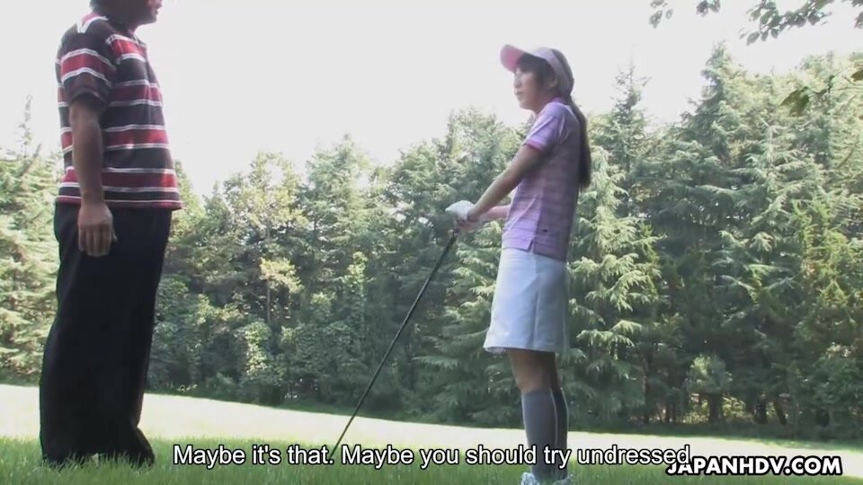 After getting vibrator on clit and nipples, Karin Mizuno sucks her golf trainer's cock. She gets vibrators on and in pussy before riding the tool. Fucked from behind and missionary, she gets multiple orgasms and cum in the trimmed love box.