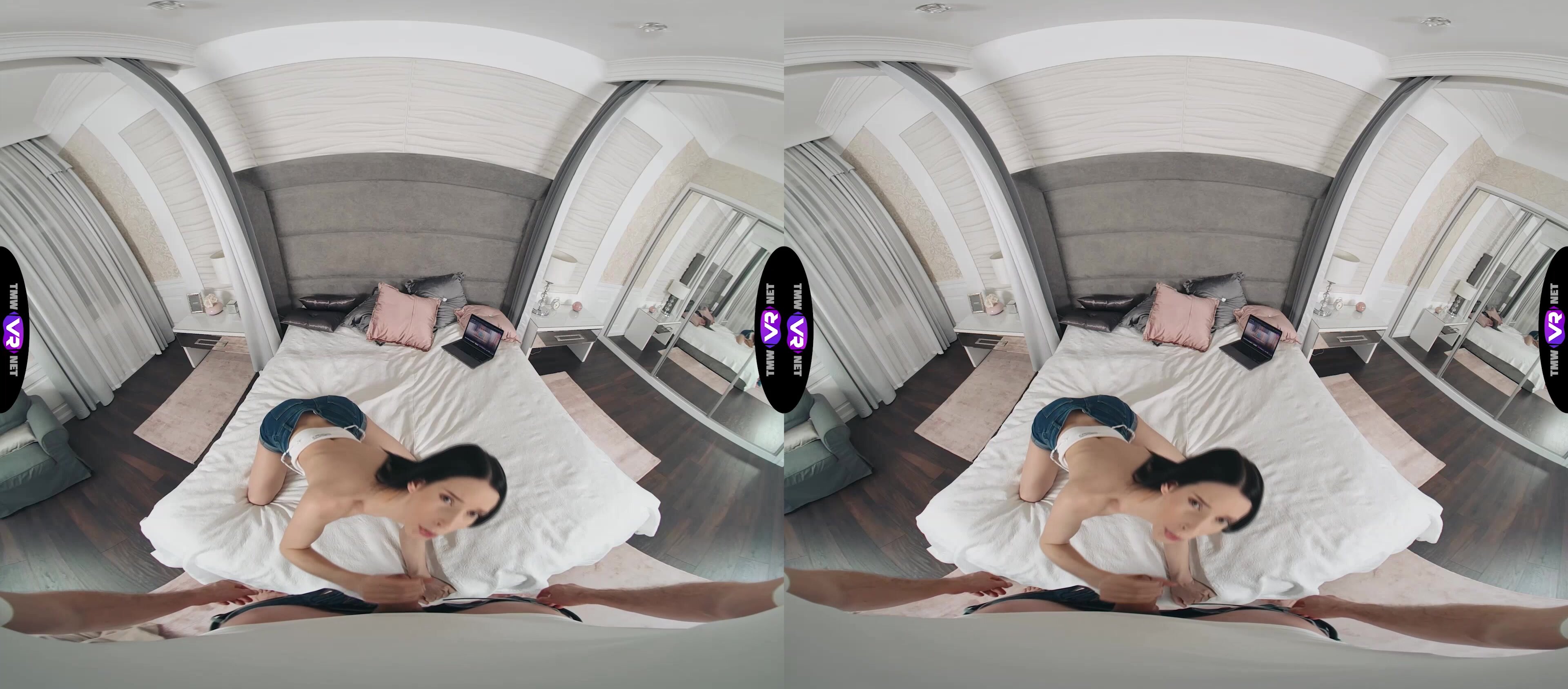 Jasmine Jayne spends the day at home, waiting for her boyfriend to come back home. She doesn't know how to entertain herself. Finally, she decides to surf the Internet. She runs into a porn site while looking through the pages. She gets excited and decides to undress and masturbate. Jasmine Jayne gets so involved in the process that she doesn't notice her boyfriend coming back home. She is so excited to see him that she turns all her excitement and attention to him. She teases him with her naked tits, unzips the dude's pants, kneels, and gives him a blowjob.