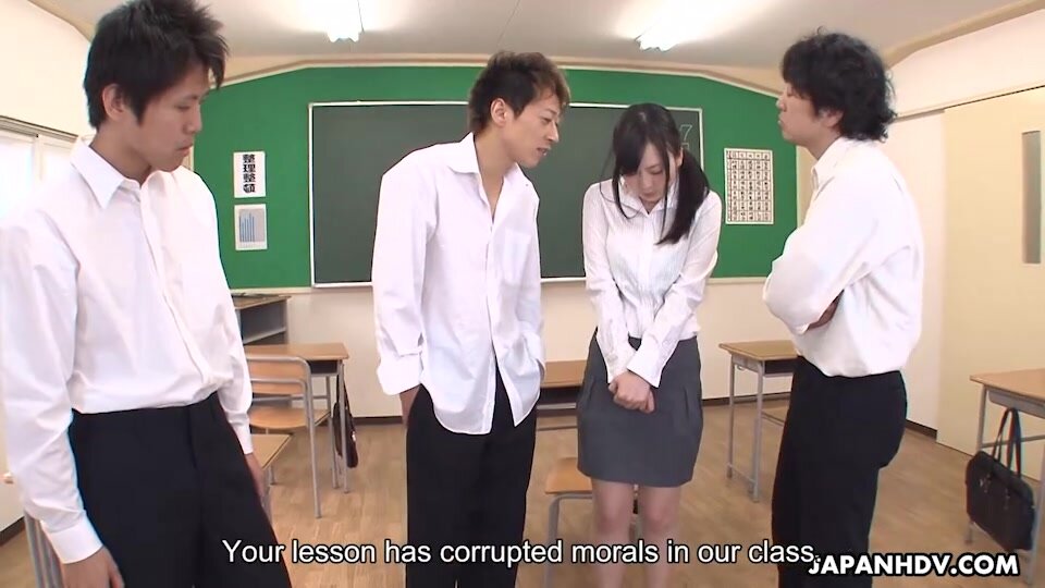 Petite teacher, Nozomi Hazuki was so pretty that many guys from her class started thinking about her in a very naughty way. One day, three of them decided to turn their sexual fantasies into reality, no matter if she wants it or no. She liked it.
