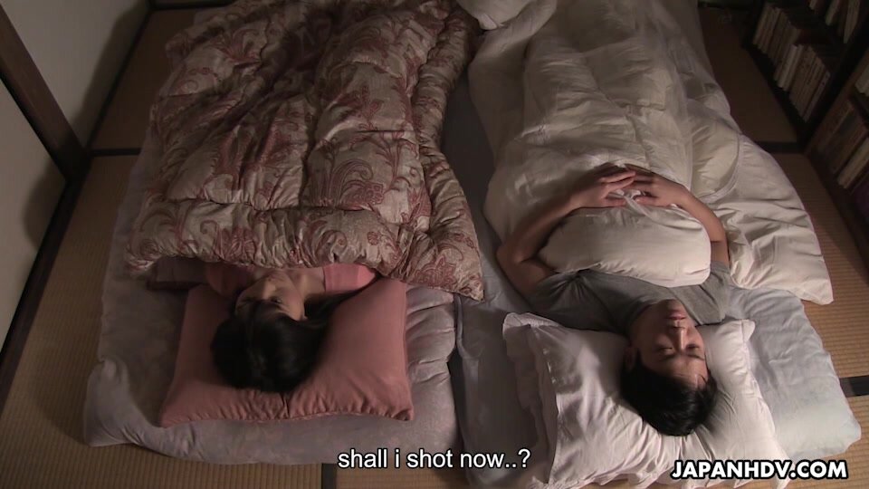 Mai Shimizu woke up in the middle of the night, since she heard some noise from the apartment next door, because a horny couple was fucking like crazy. She wanted to do the same, so she woke up An Kanoh and their private party started right away.