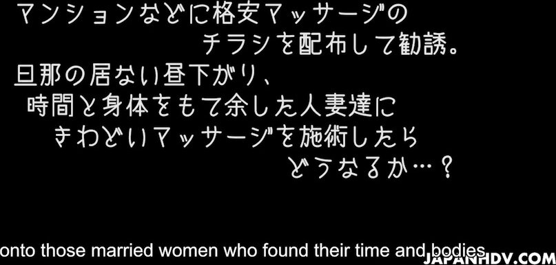 Married woman, Ichika Aimi saw an ad for a new massage place in her neighborhood and went there to try it out, hoping that the low price does not mean that it is not a good service. She was very pleasantly surprised with every aspect of it.
