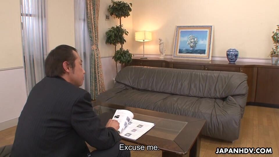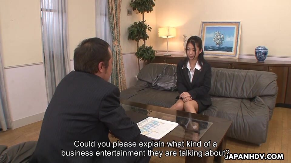 Japanese lady Satomi Suzuki offers some really nasty entertainment for her new business partner. She gets her pussy stimulated with a nice dildo. Then Satomi gets fucked in her marvelous hairy cunt and she's rewarded with a creampie in the end.