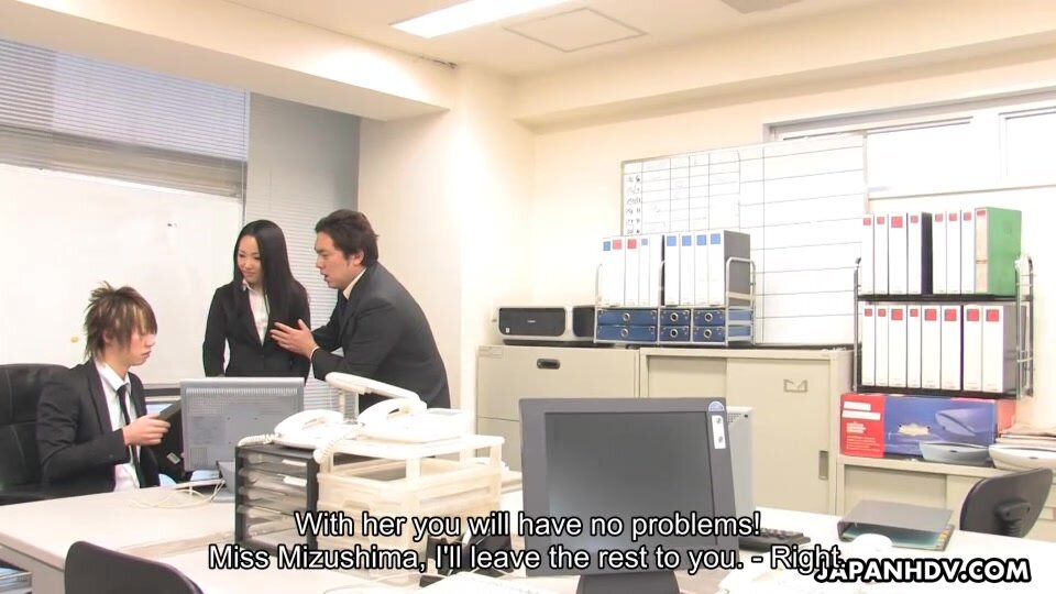 Boss of the company is in despair, Miss Ai Mizushima is asked to help him. To take that bad situation off his mind, this young lady is doing everything to keep him satisfied. She sucks his cock and takes a nice cum load it in her hot pussy later.
