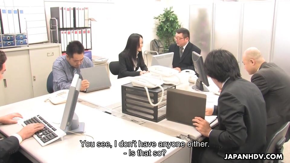 Miss Ai Mizushima is always ready to please her nasty co-workers. This time she takes all their cocks in her dirty little mouth and starts to drive them crazy. She's ready good at cock sucking. In the end they repay her with some nice cumshots.