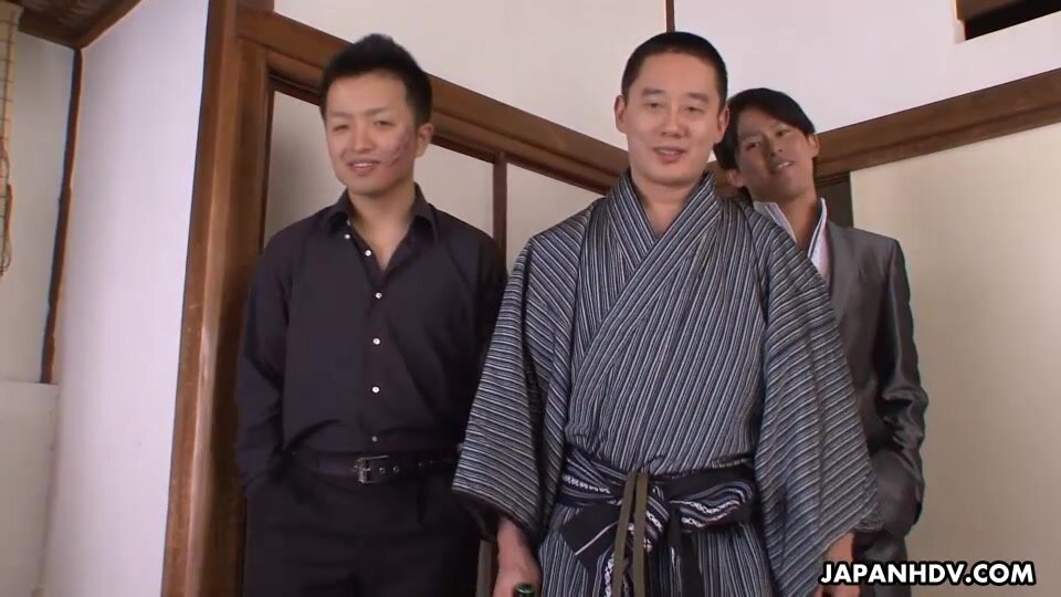 While mourning Yuki Tsukamoto overwhelms some men who came to finish the job. She gets on top of one of them and takes complete control when she gets them to fuck. She gets to please every one of them and ends up covered in cum.