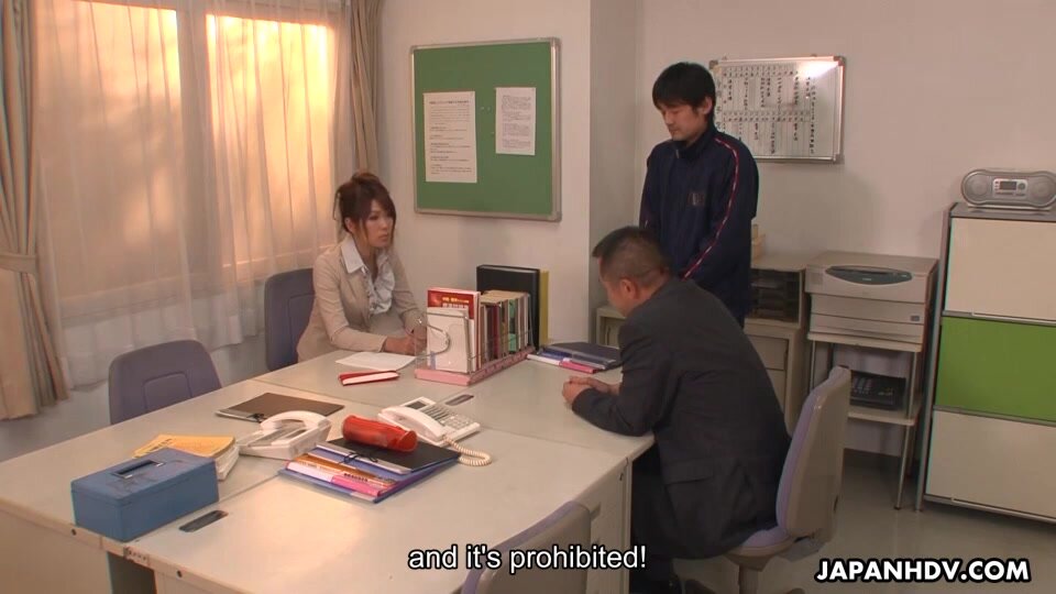 Teen cock loving Yuuno Hoshi is groped by two teachers after her secret has been discovered. They manage to convince her she will be forgiven is she fucks and sucks their cocks. Her stockings get ripped and she is deep-throating like a real slut.