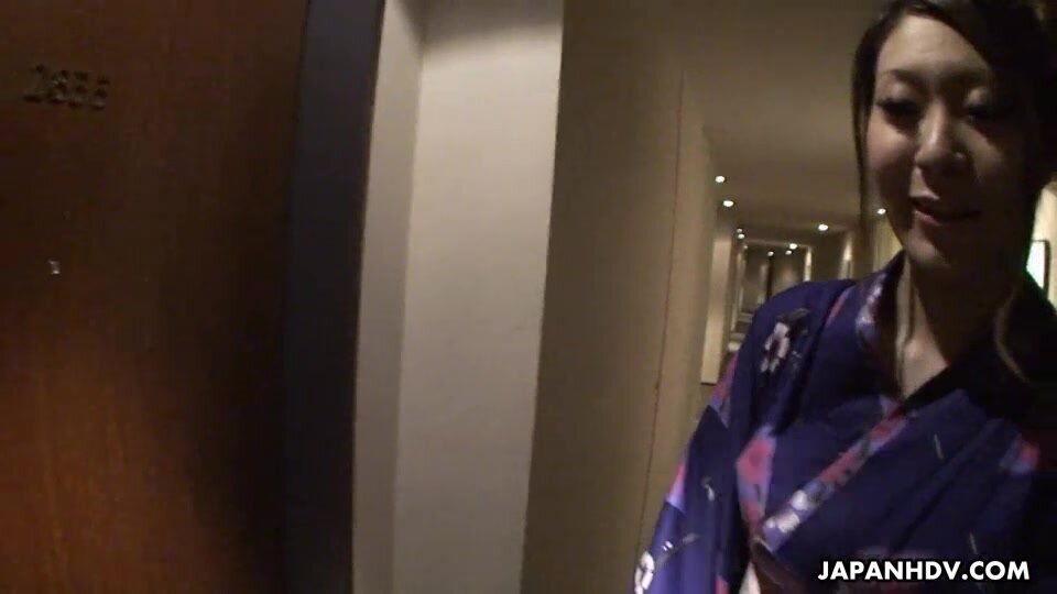 Sensual and hot Japanese babe Yuka Kurosawa in a nice kimono enjoys in showing her tight ass in front of the camera in a hotel room and getting her shaved slit stimulated by a vibrator and giving a hot blowjob and a ride when she's totally turned on