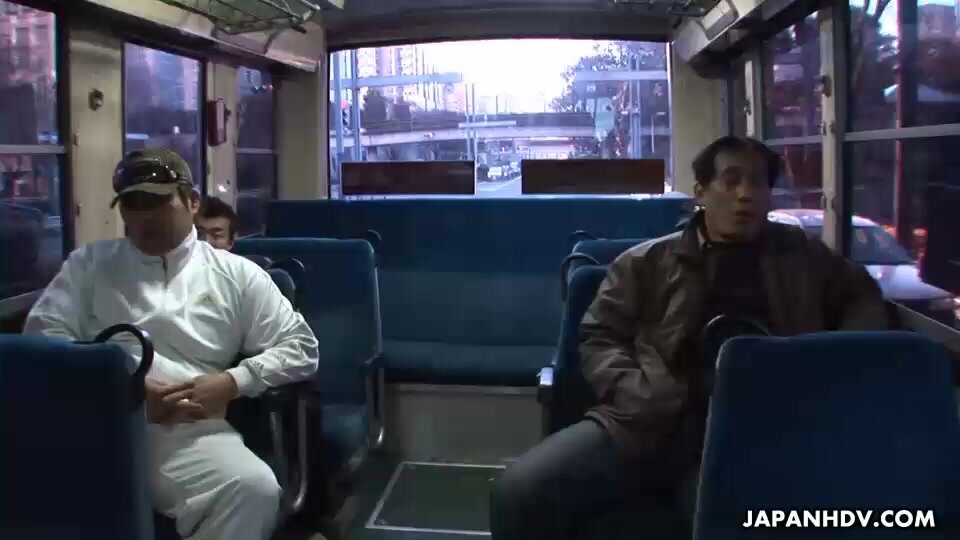 Teen Japanese school girl with big boobs in uniform Yayoi Yoshino gets her shaved pussy licked and stimulated by sex toys in a gang bang session with lots of turned on mature guys in the school bus while she's handcuffed to the holding bar moaning