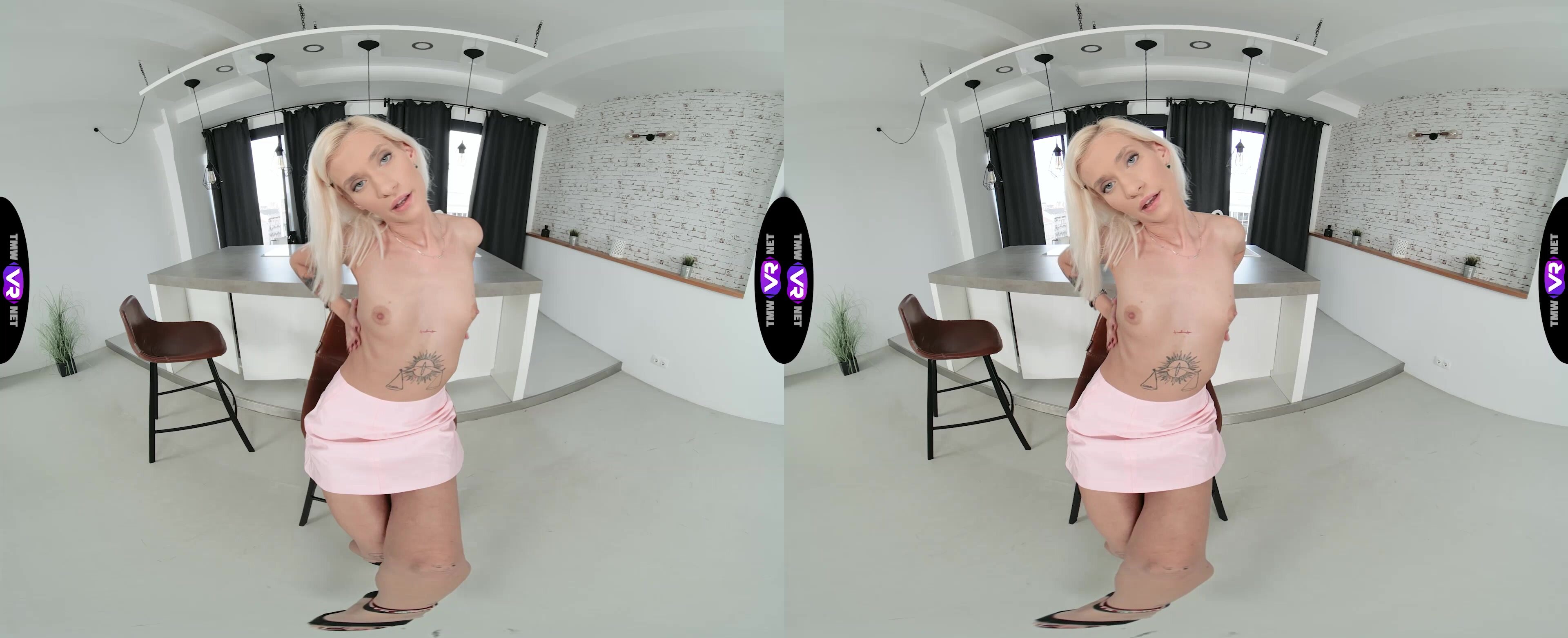 Justicia Blonde is a very straight-forward blonde. When she wants something, she says it right away. So when Justicia Blonde feels sexual desire, she hurries to satisfy it. Even though she is home alone, she finds a way to please herself. Once she feels horny and excited, Justicia Blonde takes off her outfit, caresses her yummy tits and nipples, her flat tummy, long legs, pink clit and, finally, fingers her juicy pussy on the chair.